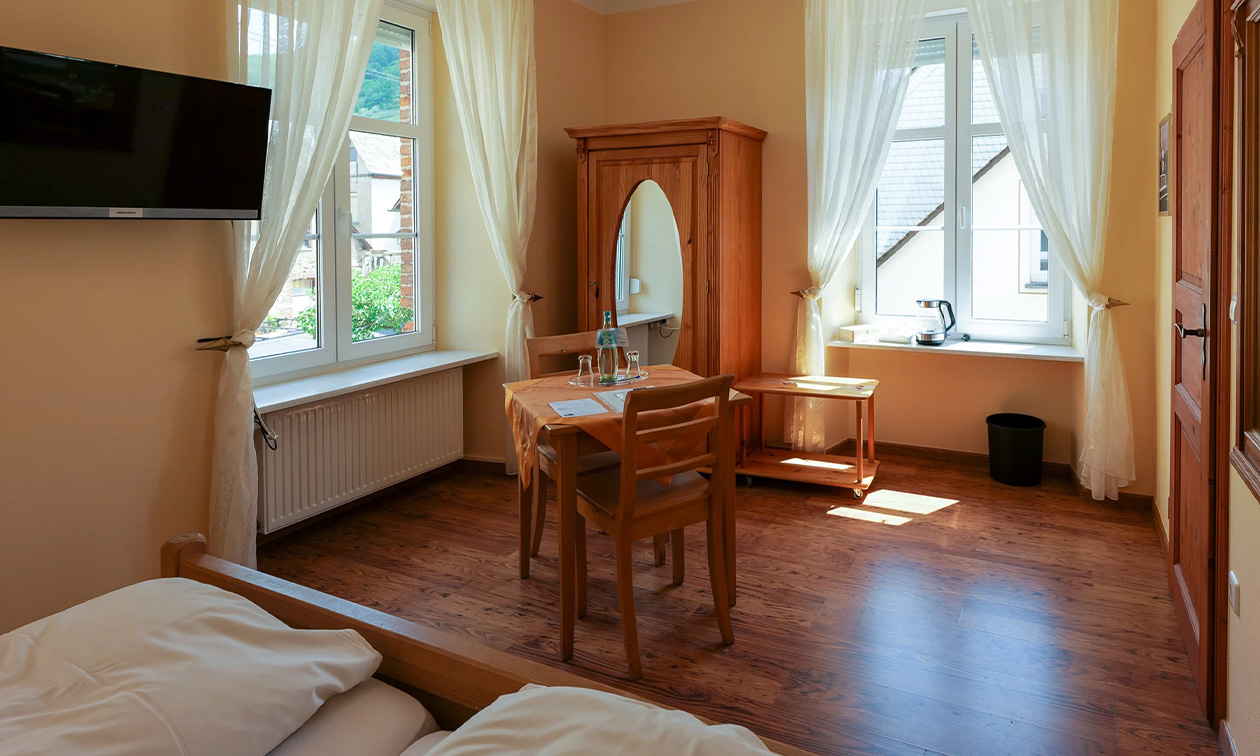 De Bürgermeisterei in Ediger werd in 1840 gebouwd aan de natuurlijke Moezel en is het geboortehuis van de eerste voorzitter van de Nationale Vergadering van Weimar, Dr. Eduard Heinrich Rudolph David. In 2001 werd het historische gebouw overgenomen door de familie Feiden, die het in hetzelfde jaar verbouwde tot het romantische hotel "Alte Bürgermeisterei". Sinds 2024 heet de nieuwe gastvrouw, mevrouw Putu Taro Apriliani, je van harte welkom.