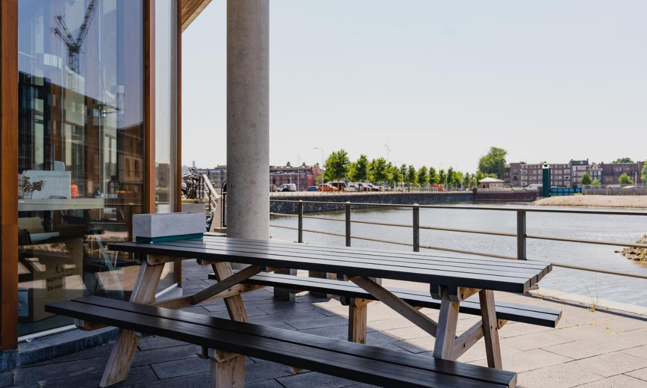 Het hotel bevindt zich op loopafstand van de historische binnenstad. Met een huurfiets bereik je de Dam binnen 15 minuten! De gratis veerpont brengt je vanaf de naastgelegen steiger in 7 minuten over 't IJ naar de culturele hotspot NDSM. Ook beschikken ze over een bootaanlegplaats en een zonnig terras aan het water.