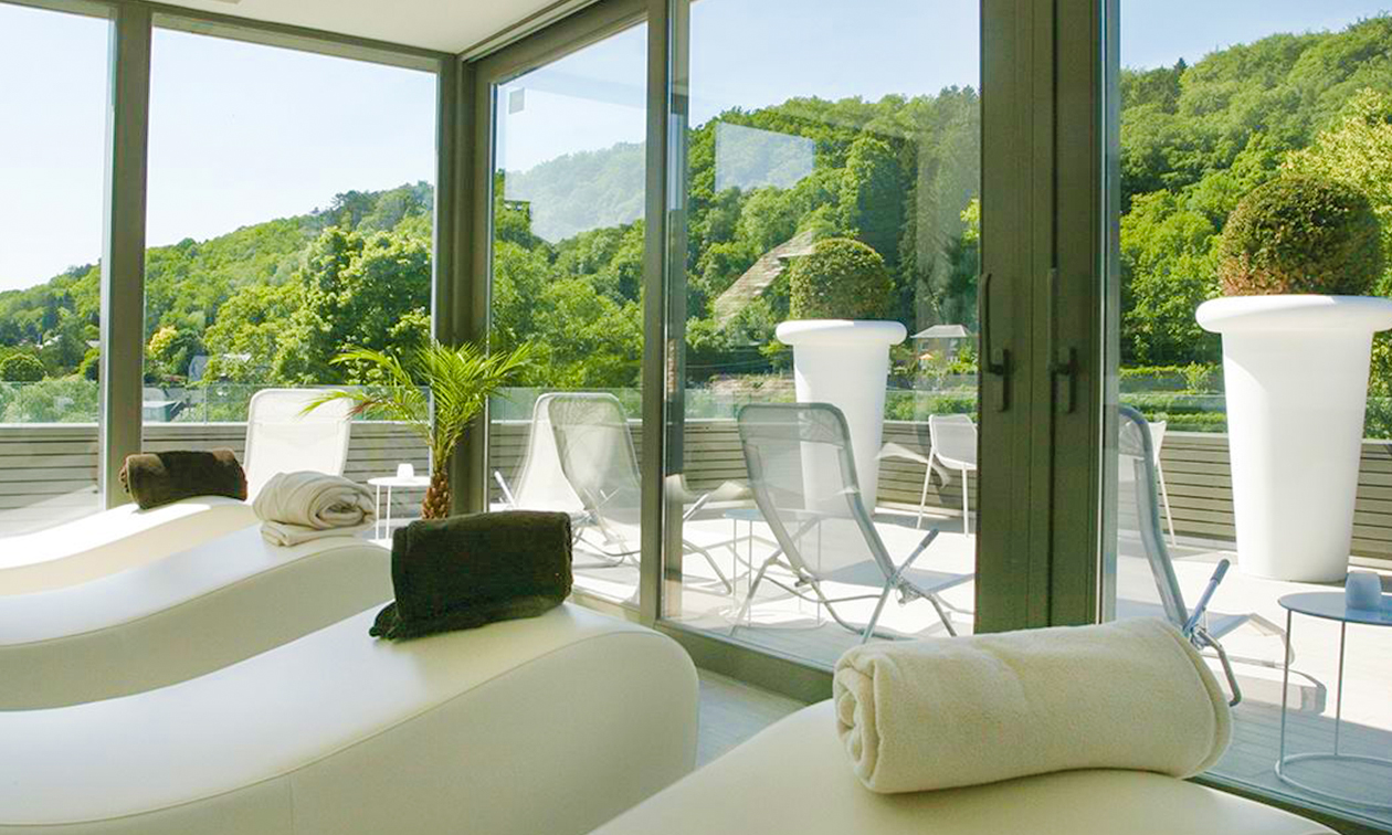 Le Sanglier des Ardennes is een ware parel van luxe in het hart van Durbuy, het kleinste stadje ter wereld. Dit 5-sterrenhotel biedt een uitzonderlijke ervaring, waar comfort en verfijning elkaar ontmoeten in een majestueus kader. Elke hoek van dit etablissement straalt elegantie en geschiedenis uit, waardoor elk moment een onvergetelijke herinnering wordt. Gelegen in het historische centrum is het een perfecte uitvalsbasis om de wonderen van de regio te ontdekken, met haar middeleeuwse straatjes, kasteel en natuurlijke landschappen. Als je hier verblijft, word je ondergedompeld in een unieke sfeer die moderniteit en erfgoed combineert. Dit prestigieuze etablissement is ideaal voor een onvergetelijk uitje, waarbij ontspanning, cultuur en natuur worden gecombineerd. Geniet van ontspannende momenten in het wellnesscentrum, een oase van rust waar hout en marmer een rustgevende sfeer creëren. Verjong je lichaam en geest met de luxe faciliteiten, waaronder een panoramische sauna, hamam, hot tub in de buitenlucht en wellnessbehandelingsruimte.
