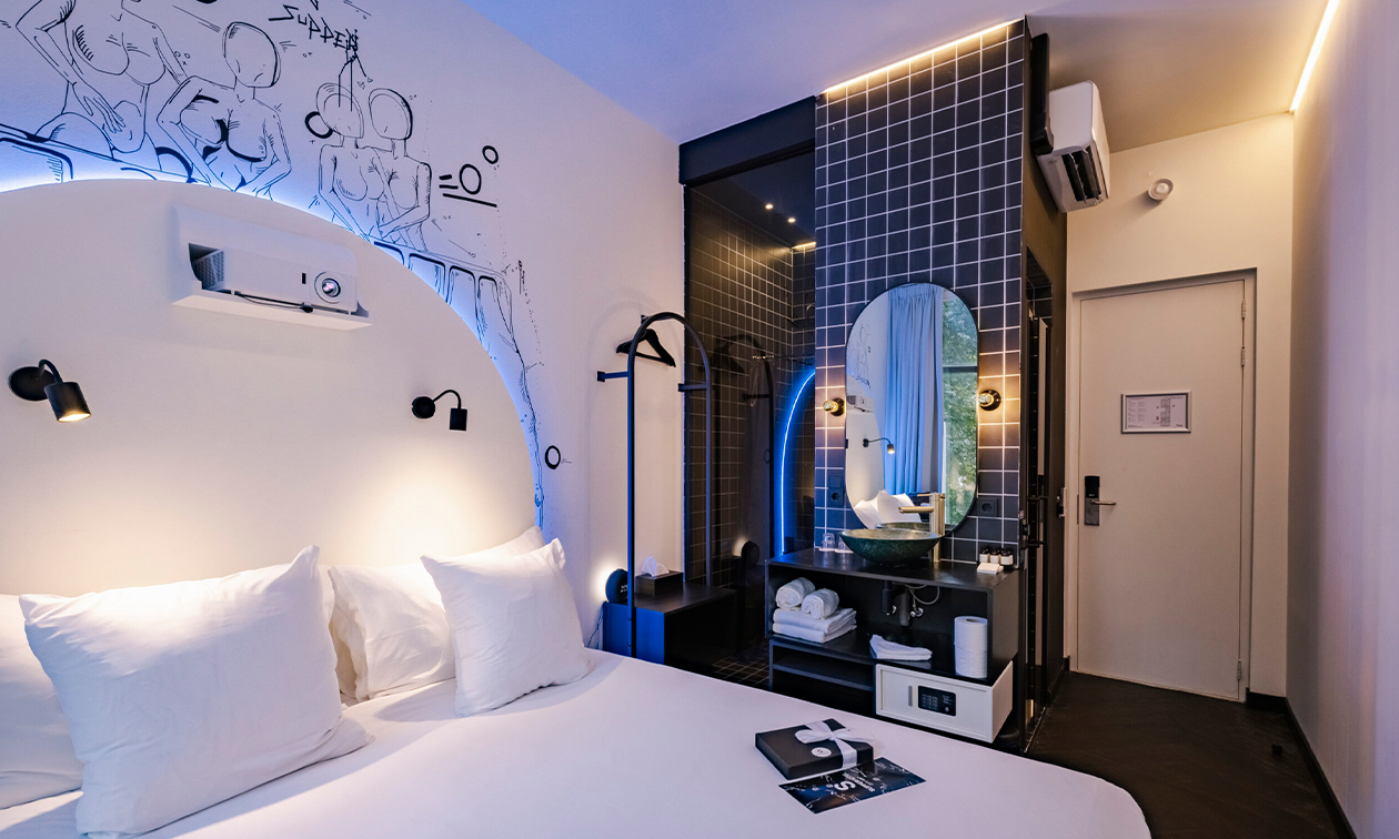 Overnacht als nooit tevoren bij SUPPER Hotel in het hart van Amsterdam! Dit prachtige hotel beschikt over unieke kamers die bedoeld zijn om het leven en elkaar te vieren. Elke kamer beschikt over een kingsize bed, Smart-TV beamer, badkamer met douche, koffie- en theefaciliteiten en nog veel meer moois. Uitgeslapen? Dan ben je in no time bij je favoriete Amsterdamse attracties, zoals het Vondelpark, De 9 Straatjes of het Rembrandtplein.