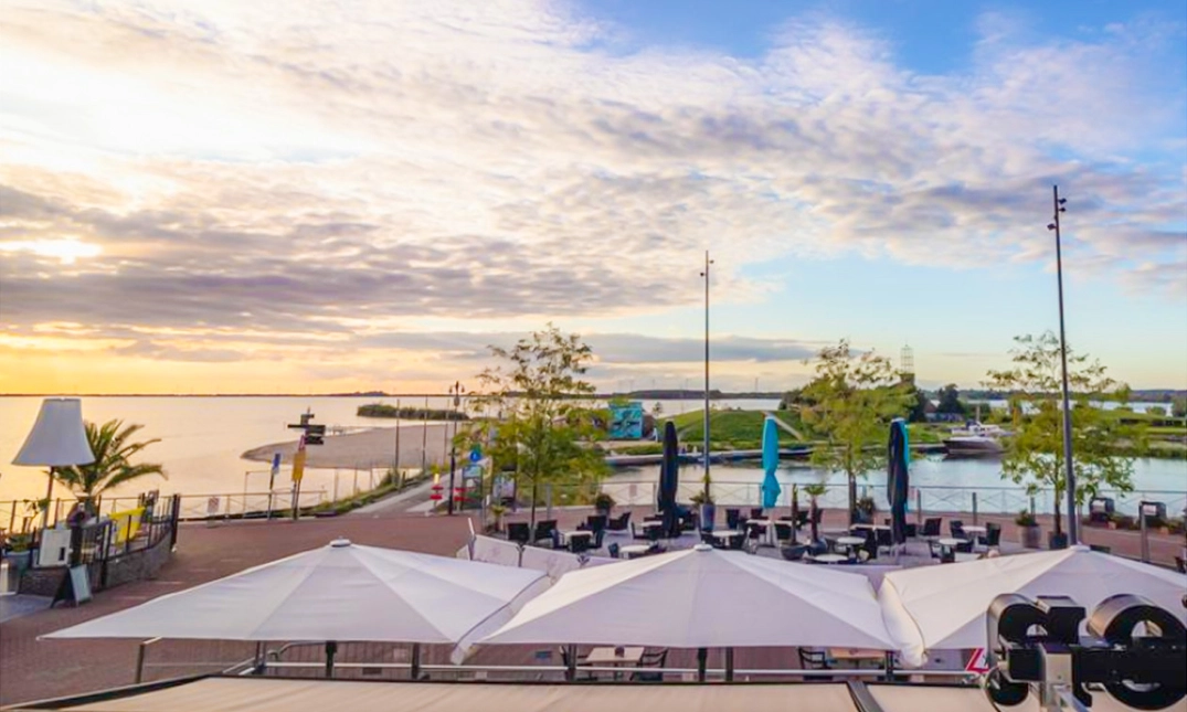 De ervaren keukenbrigade werkt met verse, regionale ingrediënten en serveert authentieke gerechten met een eigentijdse twist. Zo weet je zeker dat je geniet van een onvergetelijke culinaire ervaring. Neem plaats in de sfeervolle zaak of bij mooi weer op het gezellige terras en laat je onderdompelen in een mediterrane sfeer. Of verleng je bezoek met een heerlijke overnachting in een van de modern ingerichte kamers. 's Avonds geniet je vanuit iedere kamer van prachtig uitzicht op de zonsondergang over het Wolderwijd.