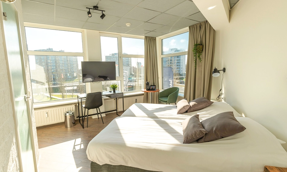 De kamers zijn ruim en zijn voorzien van een badkamer met douche, föhn, telefoon, flatscreen-tv én comfortabele bedden. Bij Restaurant WKNDS kun je genieten van een uitgebreide maaltijd. Met een korte wandeling heb je het historische centrum van Leeuwarden bereikt. Ontdek de gezellige restaurants, bars en boetieks. Of breng een bezoekje aan AquaZoo, het Fries Museum of de Blokhuispoort. Beleef een ongedwongen minivakantie in deze prachtige stad.