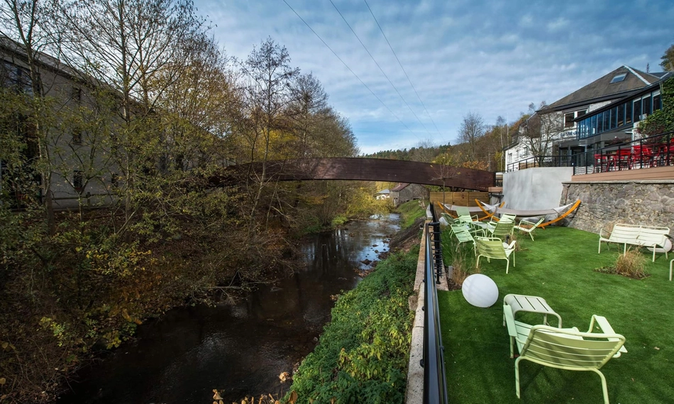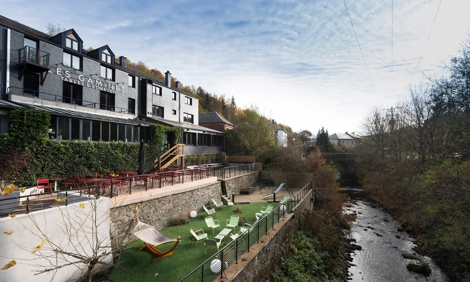 Ontdek het hart van de Belgische Ardennen tijdens een verblijf in Val de Poix, een driesterrenhotel in het bos van Saint-Hubert. Het hotel heeft 41 comfortabele en unieke kamers, met foto's van Edmond Dauchot aan de muren, en heeft een perfecte mix van modern comfort, natuur en traditionele elementen. Elke kamer straalt warmte uit en combineert modern comfort met echte Ardense sfeer, perfect om helemaal tot rust te komen na een dag vol ontdekkingen. Het hotel ligt aan de oever van de rivier de Lhomme en heeft een loopbrug die uitkijkt over het water, waardoor je geniet van een rustige en ontspannen omgeving.